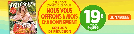 Le magazine complice qui simplifie votre quotidien ! Retrouvez nos idées astucieuses en cuisine, santé et mode. Profitez de nos offres d'abonnement Avantages à prix mini pour faire le plein d'optimisme chaque mois.